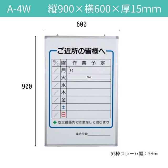 ●作業予定を書き込める、工事現場向けの週予定表です