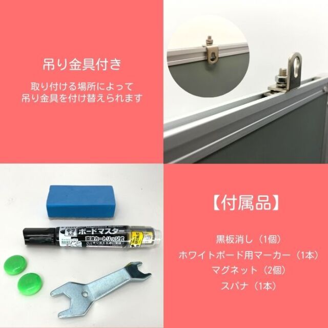 ●届いたらすぐに使える便利な付属品 (マーカー・黒板消し・マグネット・スパナ) がついています