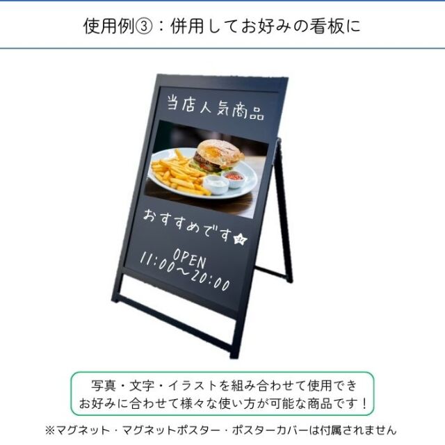 ◆1台でマグネットポスター看板・ブラックボードの2役をこなすB1ポスターサイズの片面ブラックボードです。