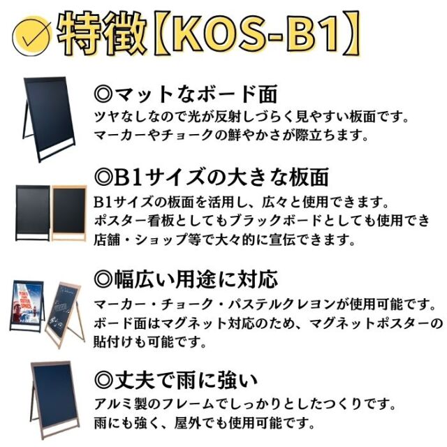 KOS-A1 屋外対応 店舗用アルミフレームA型片面ブラックボード 黒板 A1【大型配送】