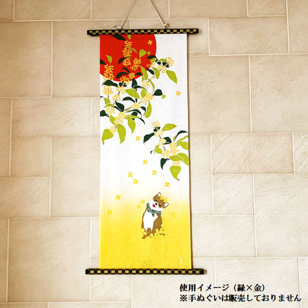 緑と金の市松模様のシンプルな柄で、どんな色合いの手ぬぐいにもマッチします。