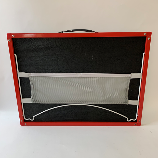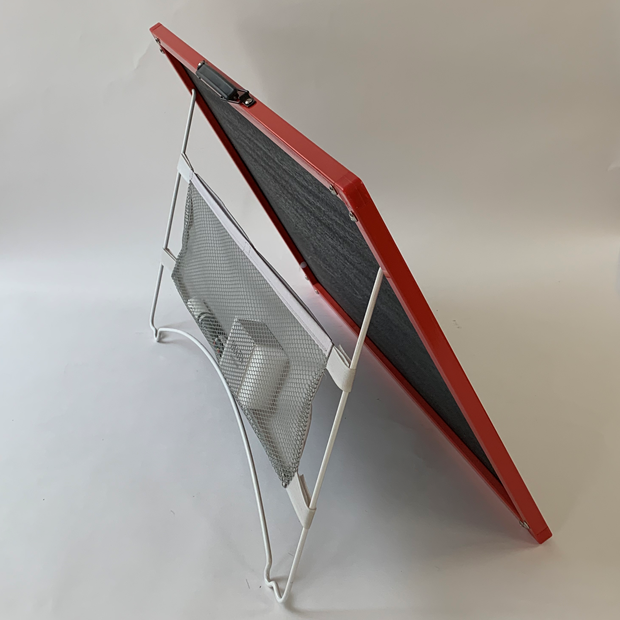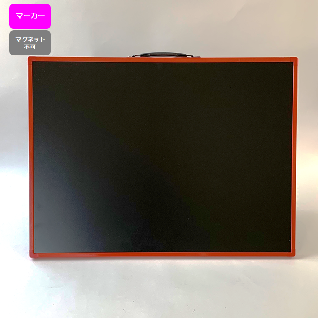 赤いアルミフレームの持ち運びできる軽量タイプのブラックボードです。