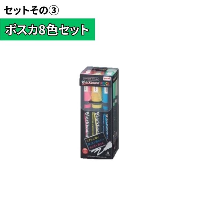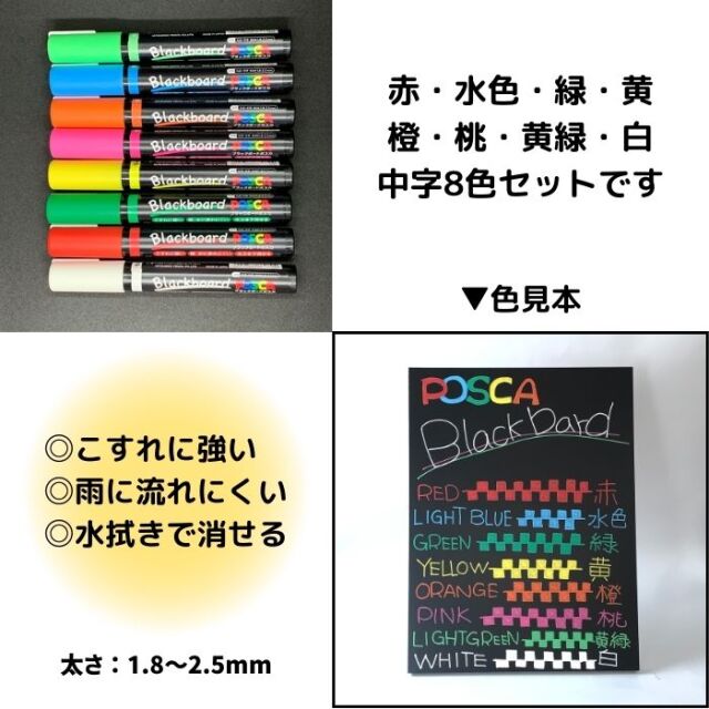 ●ポスカは中字の8色(赤・水色・緑・黄・橙・桃・黄緑・白)入りです。