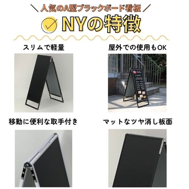 【横型板面のA型ブラックボード】TYS 屋外対応 店舗用アルミフレームA型片面ブラックボード 黒板 横型
