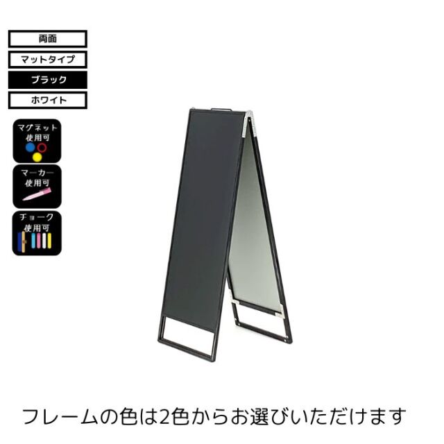 LA アルミフレームA型ブラックボード450X900mm(片面) シルバー ブラック 選べる 光沢板面 マット板面