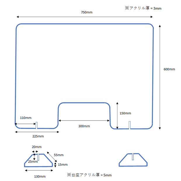 スタンドタイプのアクリルパーテーションです。厚さ3mmのアクリルボードで飛沫や飛散を軽減します。
