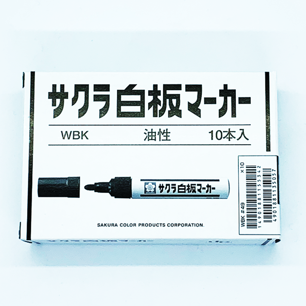 ホワイトボード専用のマーカーです。1箱10本入りで黒・赤・青の3色ご用意。